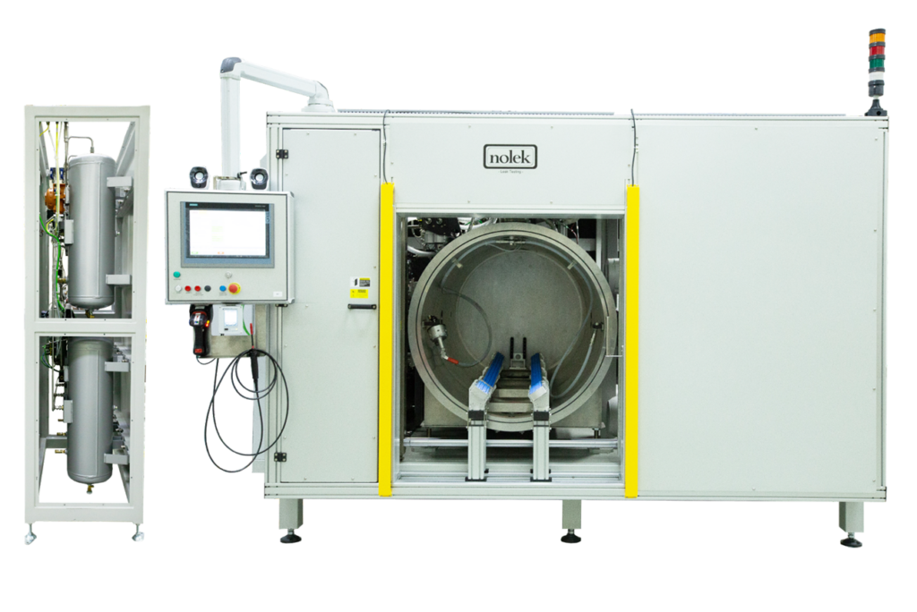 Nolek partnered with NIBE in Sweden to develop a versatile Leak and Proof Tester designed for high-capacity production. This system validates 31 different types of boiler pressure vessels, utilizing automated robotic loading to ensure seamless throughput and consistent quality validation at pressures up to 15 bar.